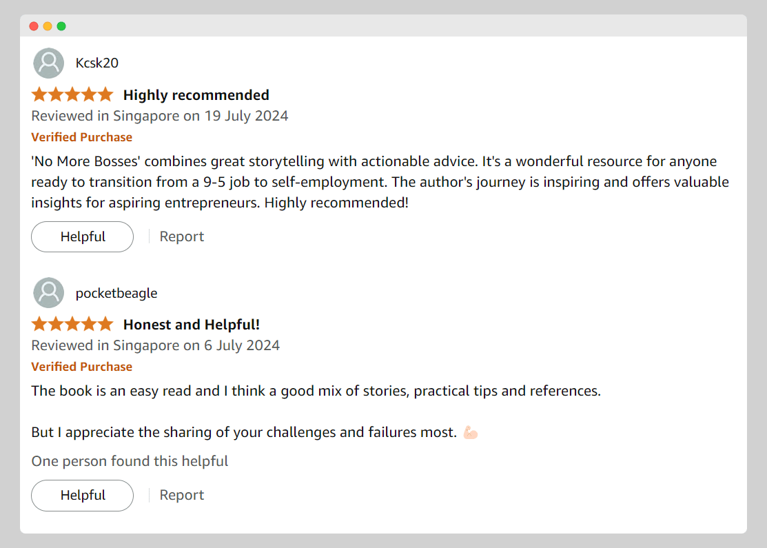 If you enjoyed my book and have a spare 2-minutes, I’d love it if you could leave an Amazon review so more people can discover No More Bosses