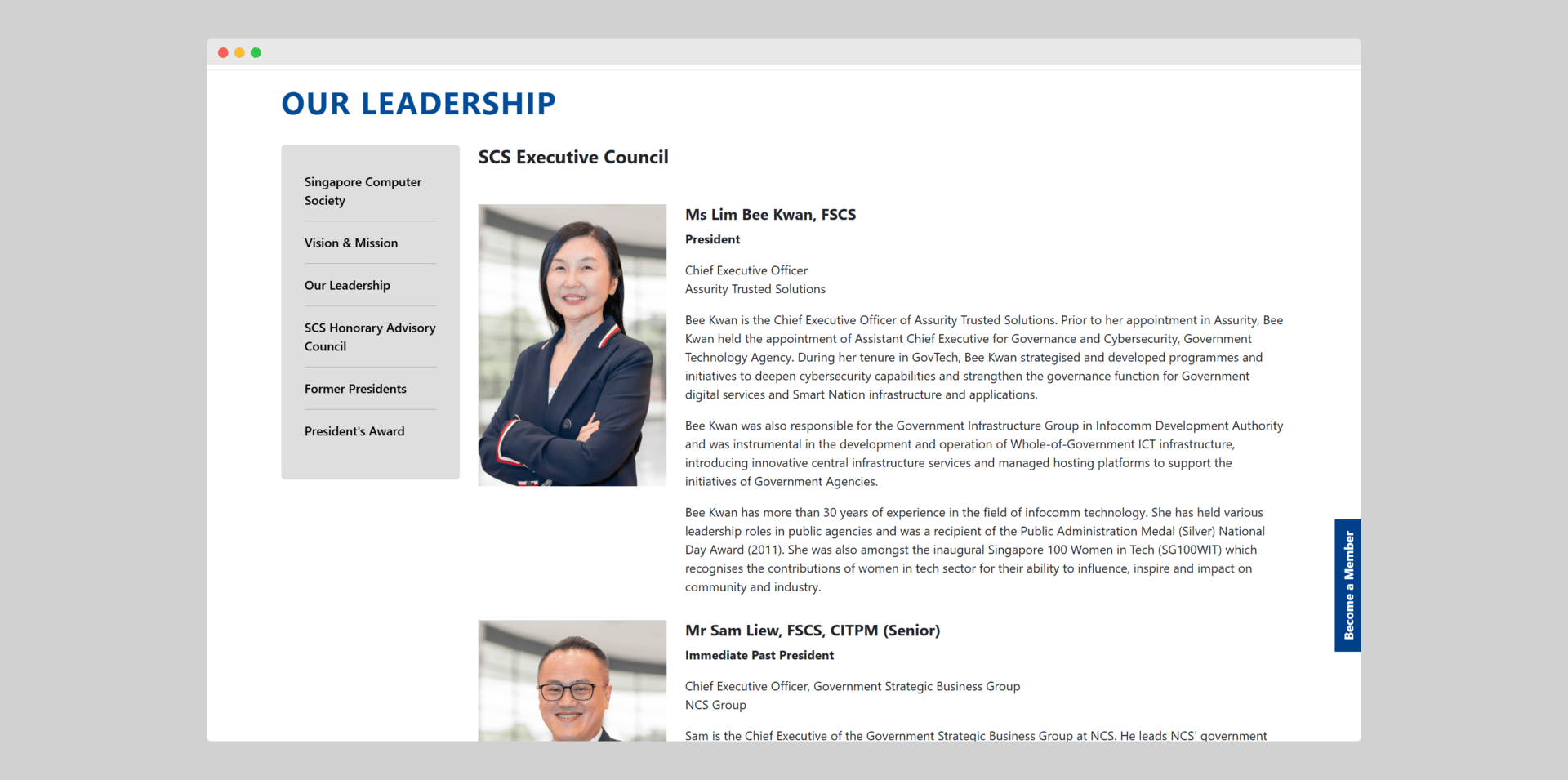 Active involvement in bodies like Singapore Computer Society (SCS) has helped leaders gain influence and visibility.