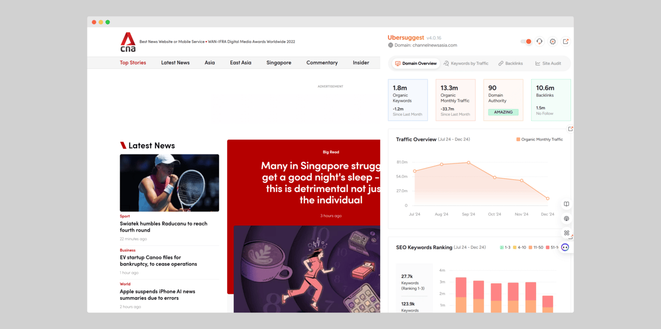 Backlinks however are not created equal. For example, getting a backlink from CNA is better than getting it from an unknown website.