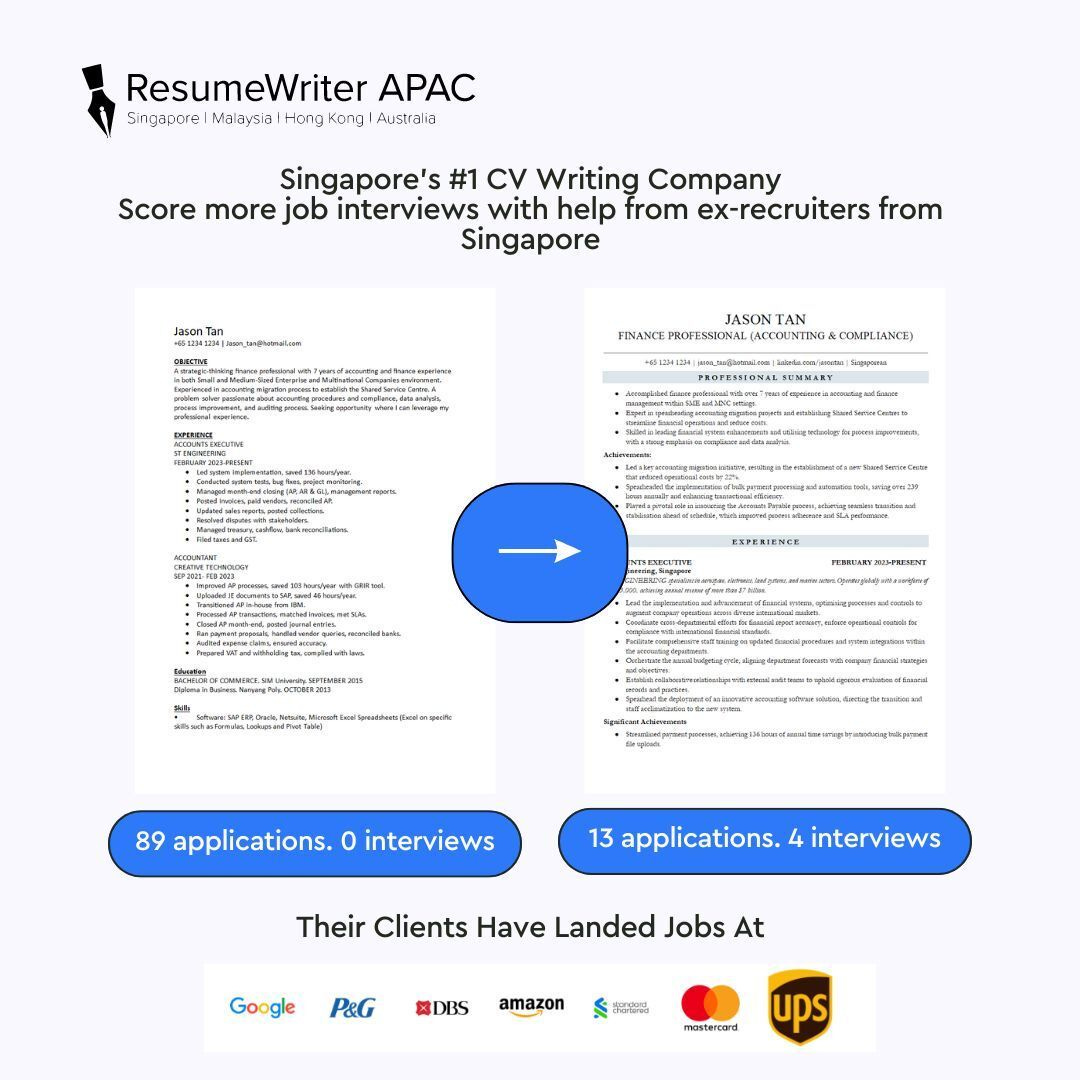 That's why whenever a friend says they’re looking for a job, I send them to ResumeWriter.SG, Singapore's resume storytellers!