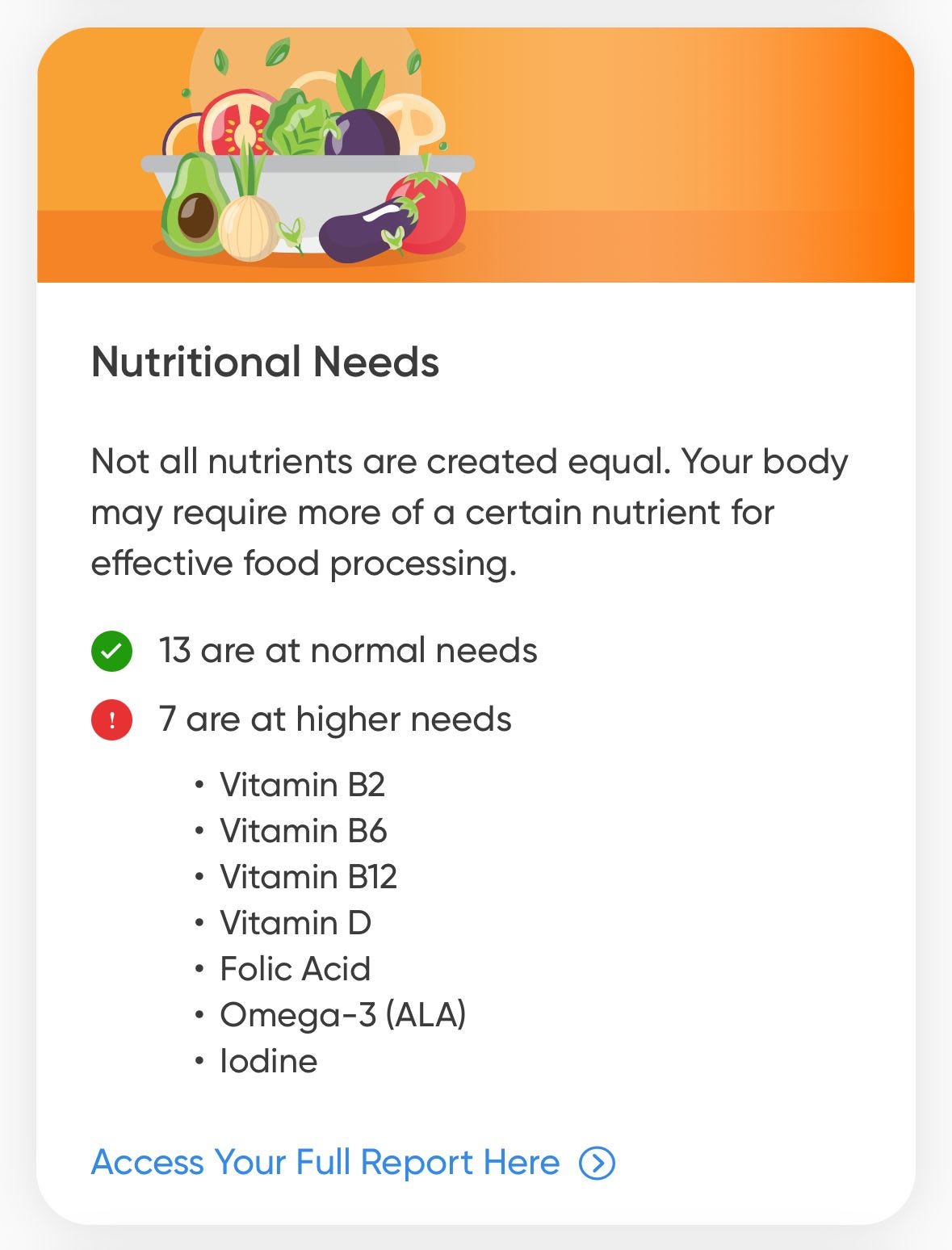 I also took a DNA test from Circle DNA during a 50% promotion, which helped me identify dietary deficiencies based on my genetics.