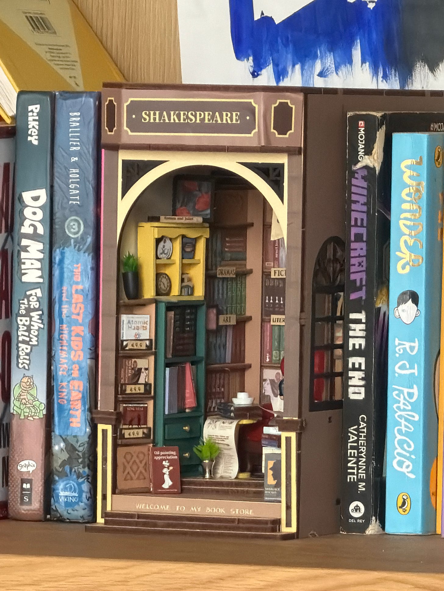 Recently, I built a book nook. If you haven’t seen one: it’s a miniature diorama — in my case, a tiny Shakespeare bookshop, complete with shelves, a staircase, and a sign that reads “Welcome to My Book Store” — that sits between books on a shelf. It does nothing. It solves no problem. It cannot be monetised. I bought a kit on a whim and spent many afternoons assembling it, and somewhere around the third tiny shelf I realised I hadn’t looked at my phone once, hadn’t thought about work, hadn’t thought about much at all except whether this miniature plant was going in the right corner.
