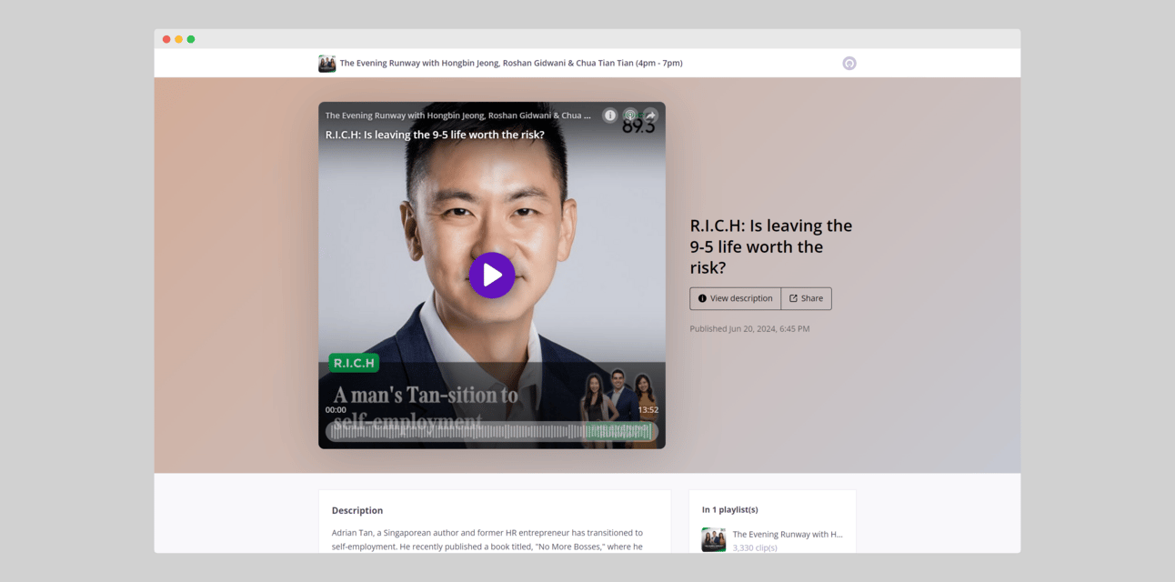 PLUS: The Evening Runway MoneyFM89.3 interview about "No More Bosses"